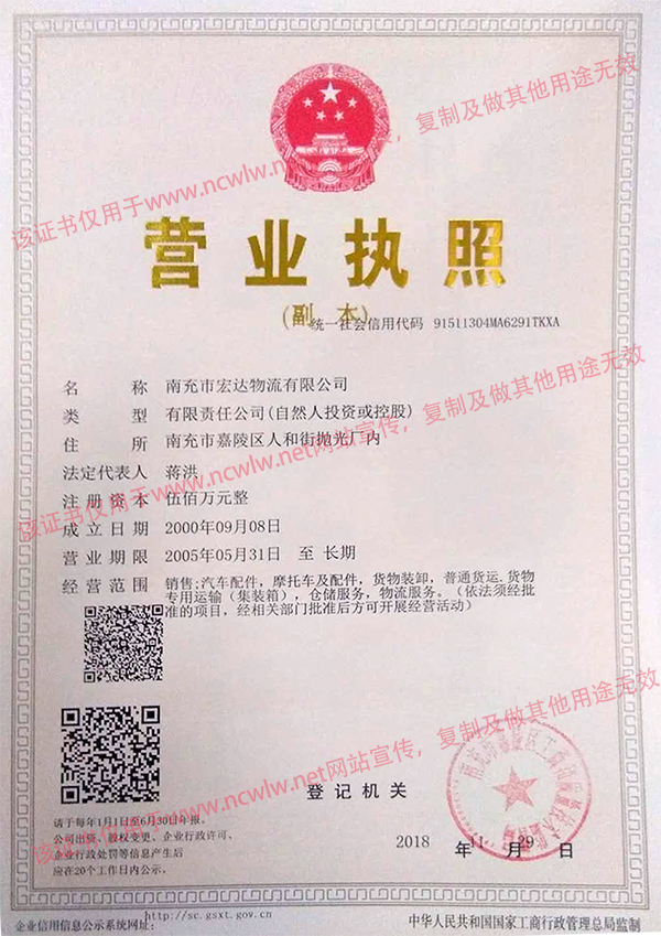 南充物流網(wǎng)(www.mdkwzj.com) 南充市宏達(dá)物流有限公司營(yíng)業(yè)執(zhí)照