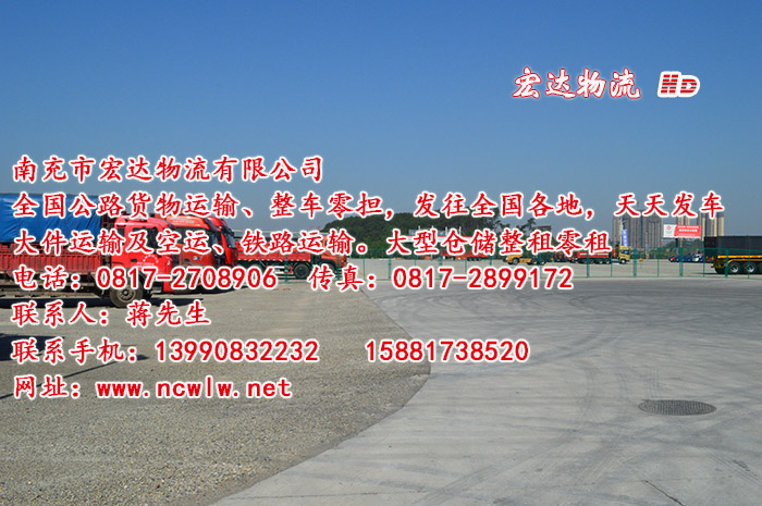 國內(nèi)公路貨物運輸、整車、零擔(dān)、大件運輸及空運、鐵路運輸。 專線:南充-廣州、深圳、浙江、上海、國內(nèi)每天發(fā)車往返。3-4天到達目的地。手機:13990832232 15881738520